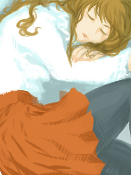ガンガンに目が冴えっぱなしの神楽は布団を跳ね除け、押入れ(神楽の寝所)から出て銀ちゃんの部屋に行きまずムリヤリ起こし、そっちの布団の方が寝られそうだと銀ちゃんを布団から追い出しさっさと潜ったものの(眠い銀さん不承不承違う布団引っ張り出して隣で寝る)なんか銀ちゃんのまくらがオッさんくさくて寝られん(銀さんついにオッサンの仲間入りだ!)とか文句を言いだし、とどめに今まで自分達はどうやって眠りに入ってたのか・・・つきつめて考え出したら「眠る」とは一体どういう状態なのかと推考しだし、だいたい目を瞑るということは目蓋の裏の暗闇を見てるだけで眠ってるわけじゃない眼球は目蓋の裏のどこに置いたらいいのかわからん上見てればいいのかまっすぐ見てればいいのかどうしてたっけどうすればいいアルかという、そんなことを目の下クマつけて天井見据えたままブツブツと隣で明日仕事なので寝ようとしてる銀ちゃんに聞かせ続ける神楽・・・