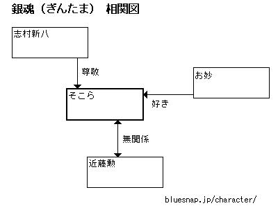 ひらがなの場合は、ルックスが土方と高杉足して2で割った感じだそーで・・・・・・あーあるあ・・ねーヨ!常に瞳孔開きっぱなしか?どんだけアナーキー?