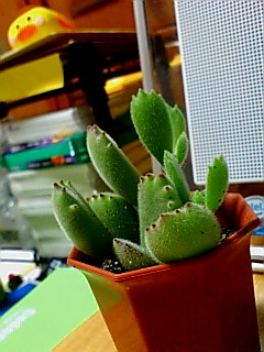 そうなると、今までどれもこれも同じよーなモンに見えてた他の多肉植物たちも俄然輝いて見えてくるモンですね、で、カッケーかっけー言って見てたら今度・・・えーとなんだっけ、フィギュアのネロの右腕みたいにクリアパーツで出来てんじゃね?みたいなカッコイイやつが・・・種類名忘れましたけど、ソレ分けてもらうことに。